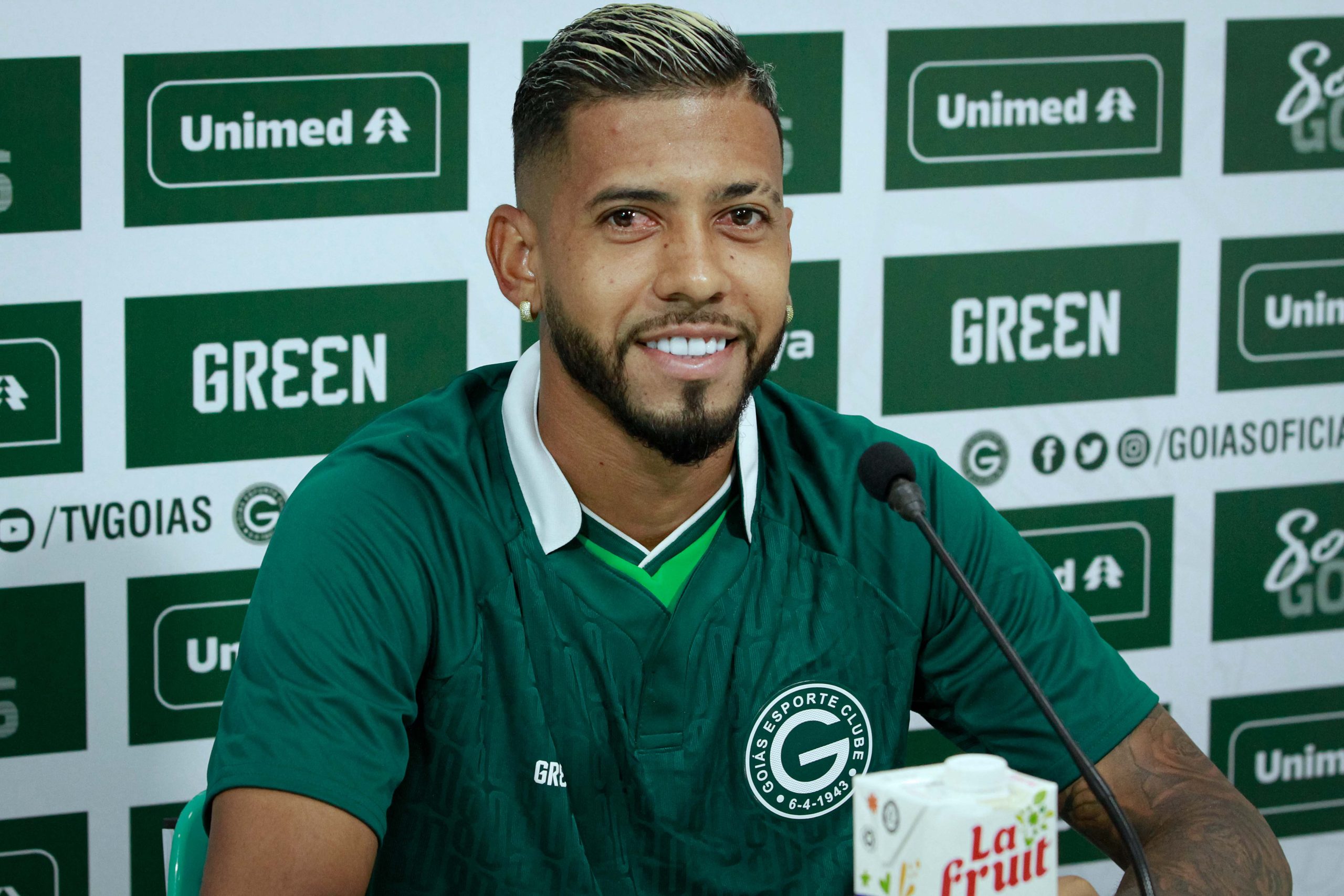 O lateral direito Weverton, de 24 anos, contratado por empréstimo junto ao Red Bull Bragantino, foi oficialmente apresentado no Goiás nesta quarta-feira (10). Na sua primeira fala como jogador do Goiás, o atleta analisou suas características, diz ser um lateral ofensivo e que chega para somar no elenco. No entanto, o ponto que mais chamou a atenção na coletiva, não foi o mencionado.