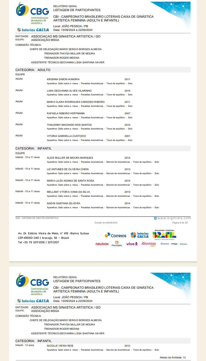 “Trabalhamos há mais de 4 anos no alto rendimento da ginástica artística em Goiás. Após um longo período sem representantes em competições nacionais, é uma sensação incrível poder retornar para eventos tão importantes. Participamos do campeonato pelo terceiro ano seguido, e é maravilhoso ver nossas talentosas atletas demonstrando garra e maestria, trazendo relevância para nosso estado”, disse Mário Sérgio, fundador da Associação MS.