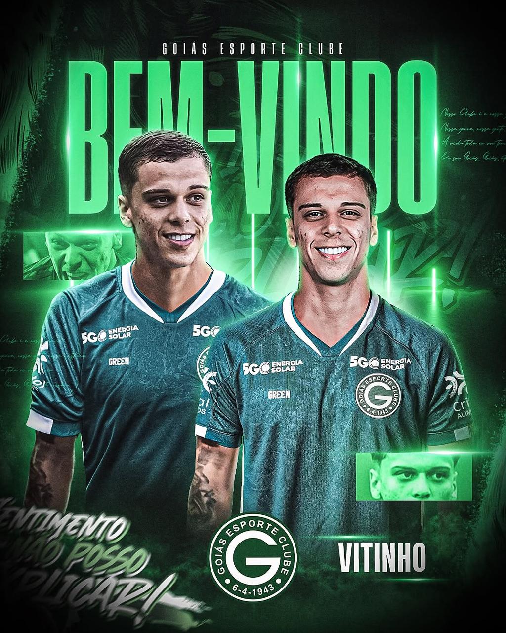 Agora, Vitinho chega ao esmeraldino para disputar o Goianão, a Copa Verde e a Série B. Antes dele, junto com o técnico Jair Ventura, o alviverde já havia anunciado outros 11 nomes: Luiz Felipe (zagueiro); Willean Lepo e Lucas Lovat (laterais); Juninho, Rodrigo Andrade e Gonzalo Freitas (meio-campistas); Facundo Barceló, Edson Carioca, Arthur Caíke, Zé Hugo e Esli Garcia (atacantes).