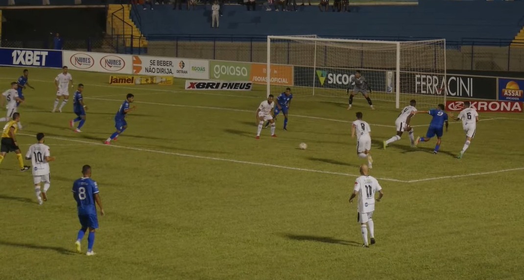 O Goiânia não sofreu o baque do gol e logo na sequência, aos 30, empatou. Yan cruzou na ponta direita e dentro da área, de cabeça, deixou tudo igual. Com o empate o Goiânia foi para cima, teve outra boa chance aos 44 com Vintecinco, mas nada que alterasse o placar. Final da etapa em 1×1.