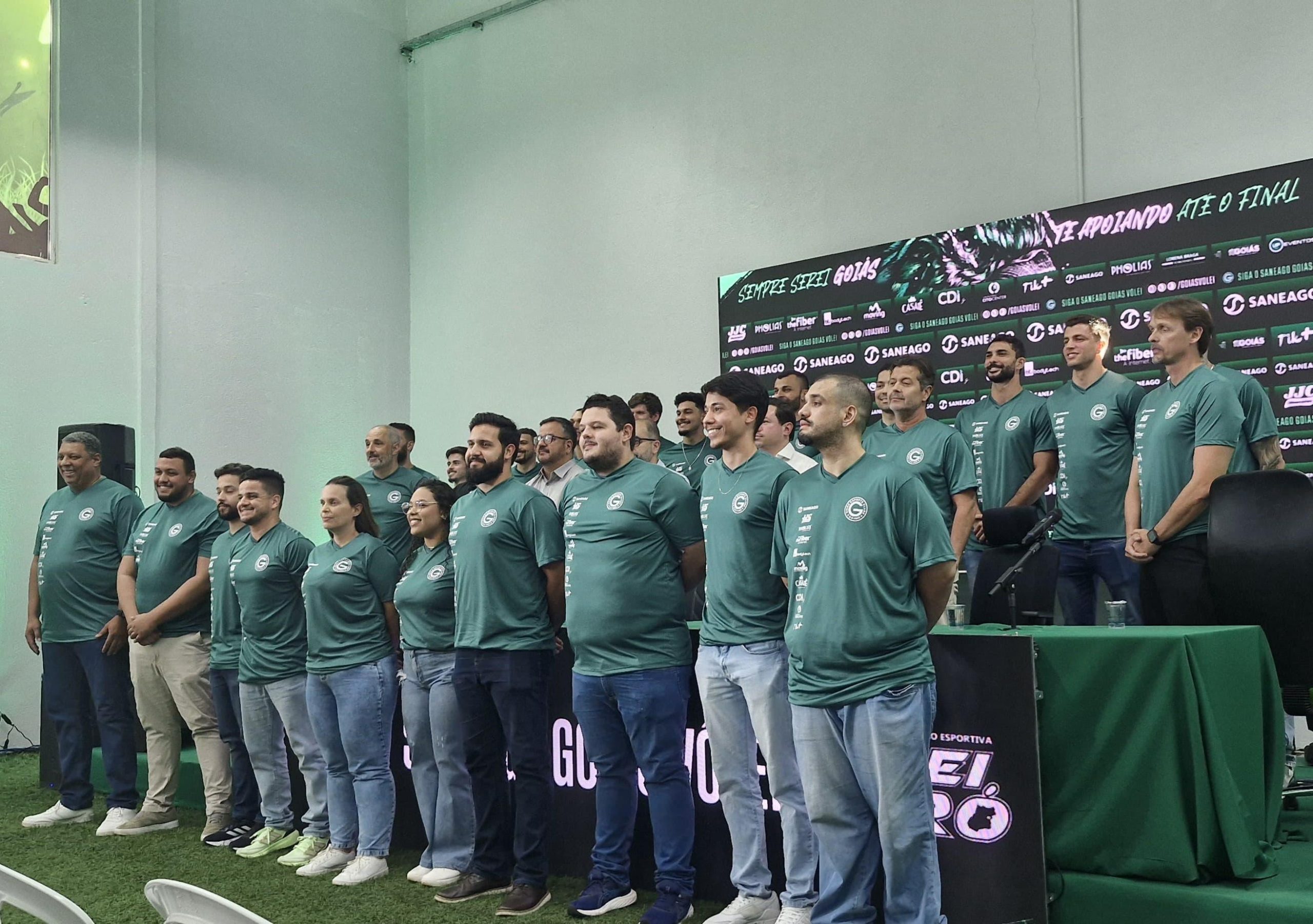 No Estádio Hailé Pinheiro (Serrinha), em Goiânia, o Saneago/Goiás Vôlei apresentou o elenco da temporada 2025/2026. O evento, que ocorreu na tarde de quinta-feira (10), contou com a presença da imprensa, de patrocinadores e conselheiros. Até o momento, o grupo de atletas conta com oito remanescentes e cinco reforços.